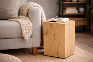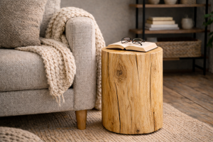 Kvalitní špalek z masivu nepůsobí anonymně. Naopak dokáže v prostoru vytvořit přirozený akcent, který není okázalý, ale přesto je výrazný. V moderním interiéru může fungovat jako odkládací stolek, noční stolek, podstavec pod květiny nebo solitérní prvek, který prostor zjemní a dodá mu teplo.