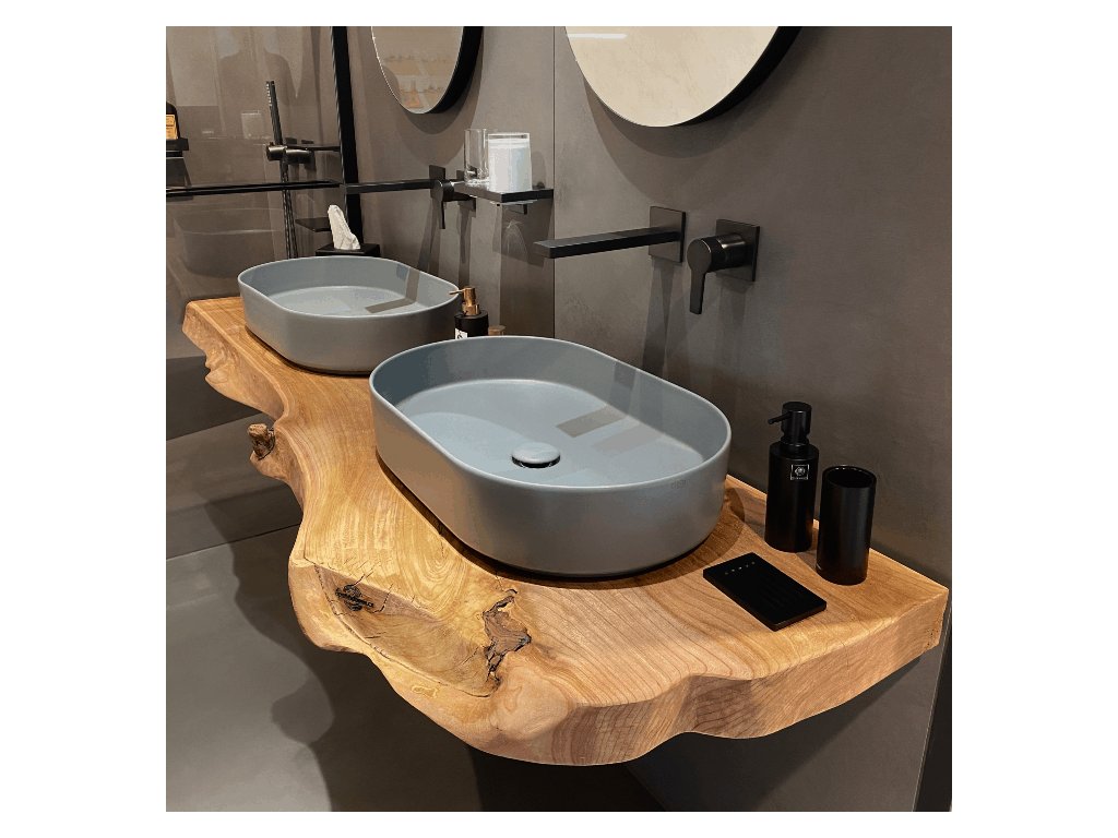Každý kus je originál – tvar, odstín i textura se mohou mírně lišit, protože dřevo si vždy zachovává svůj jedinečný příběh. Na přání zákazníka umíme upravit rozměry, odstín i tvar hrany, aby deska perfektně zapadla do prostoru i k vybranému typu umyvadla.