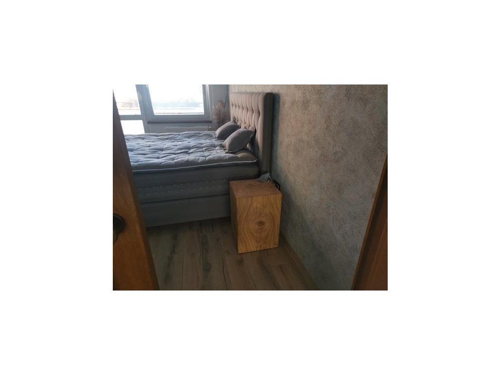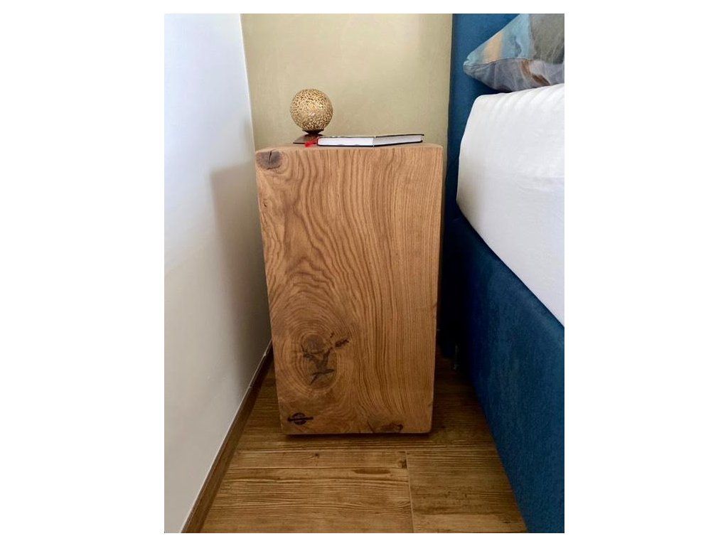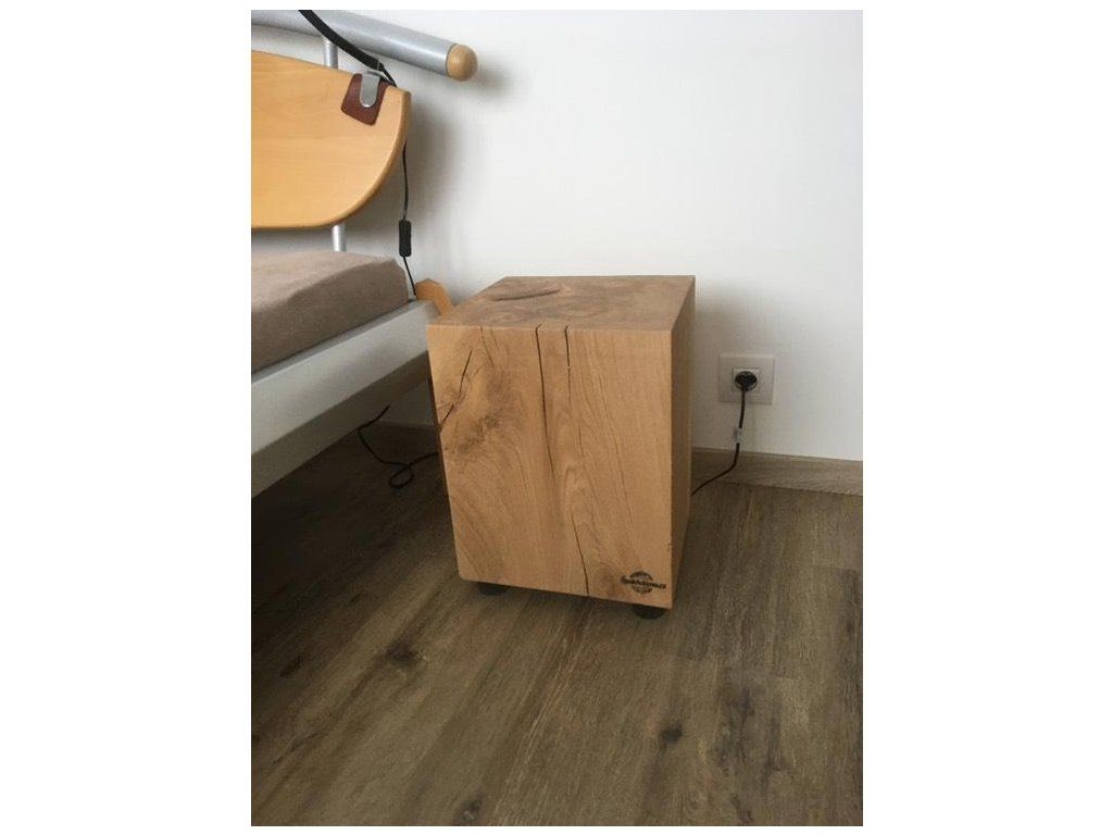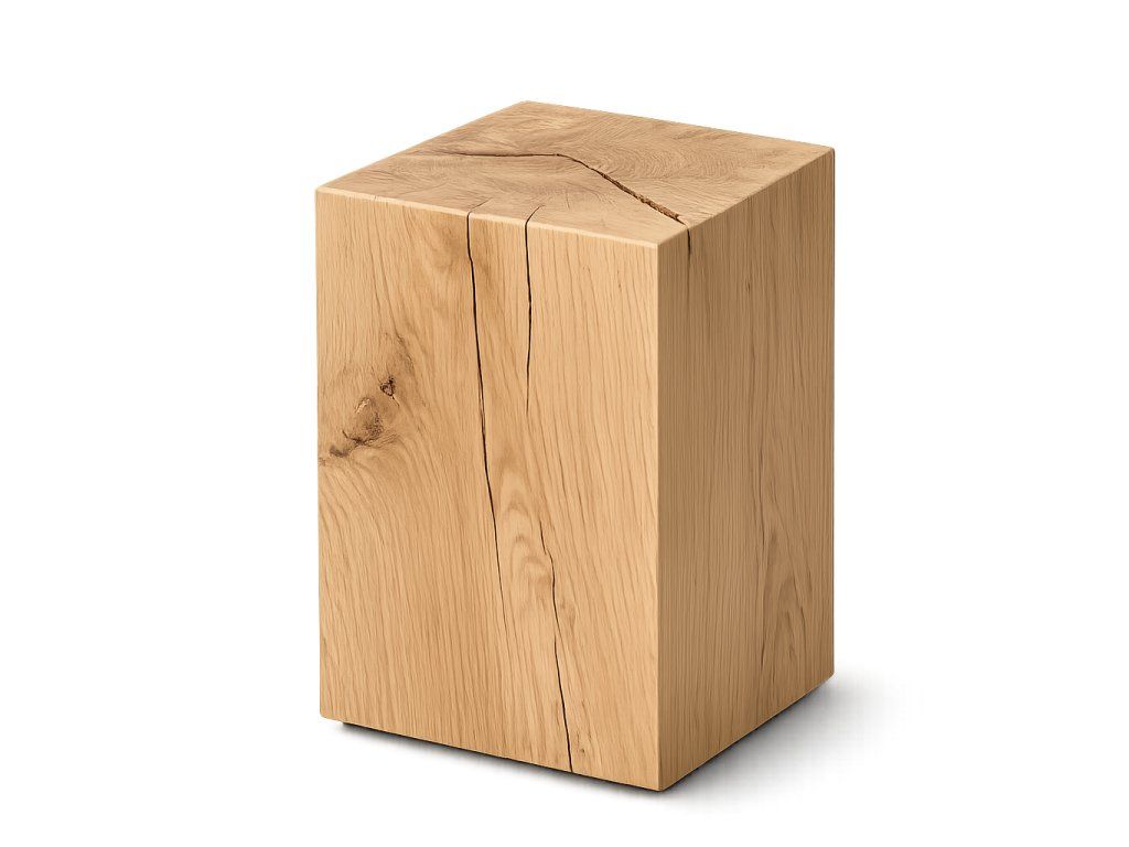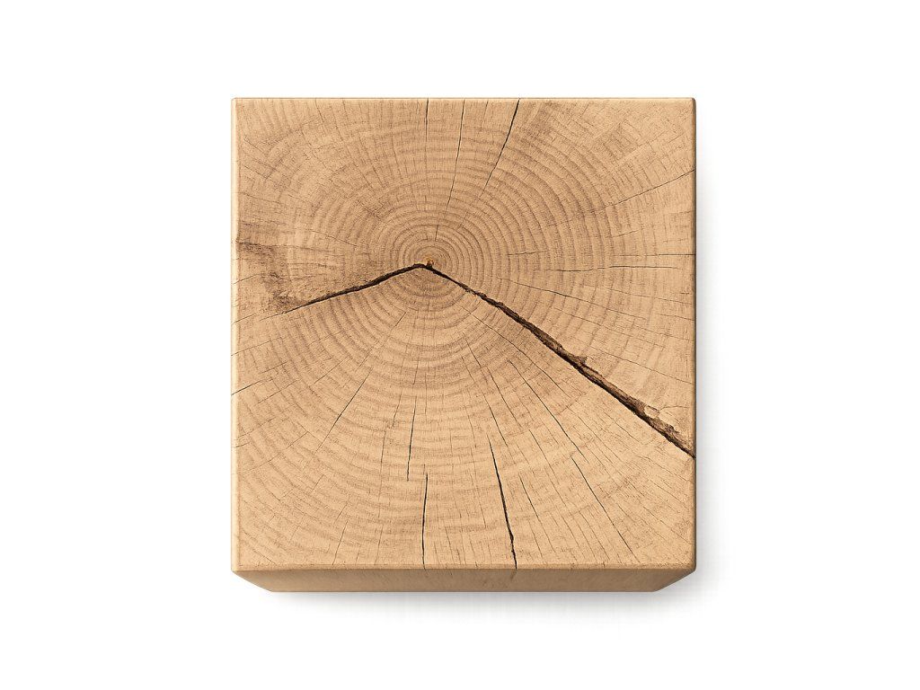 Každý kus je vyrobený z českého dubového dřeva a ručně opracovaný tak, aby vynikla přirozená kresba a struktura materiálu. Rozměr přibližně 35 × 35 cm působí kompaktně a prakticky, takže špalek může sloužit jako odkládací stolek, podstavec i solitér. Každý kus je originál s vlastní kresbou, odstínem a charakterem dřeva.