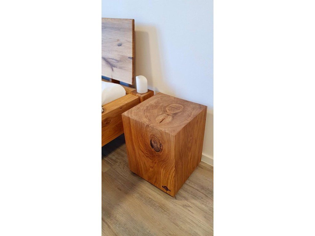 Díky svému tvaru působí hranatá varianta o něco čistěji a architektoničtěji, přesto si zachovává přirozený charakter masivního dřeva. Hodí se do obývacího pokoje, ložnice i předsíně.