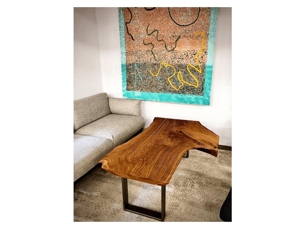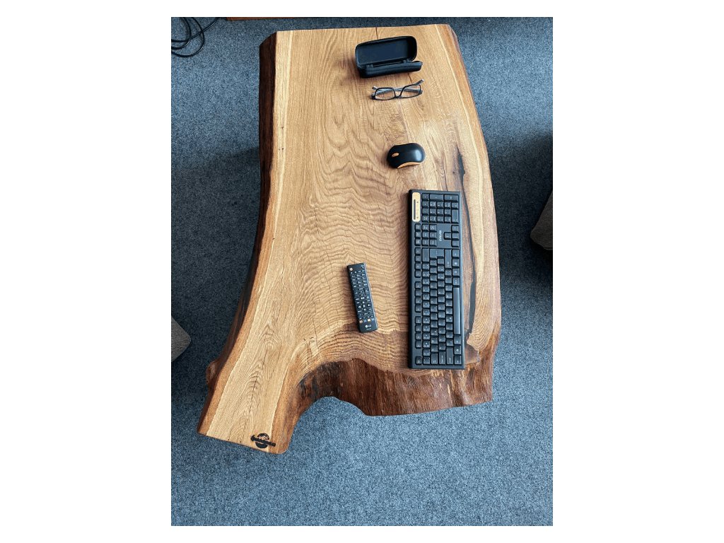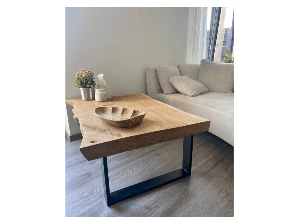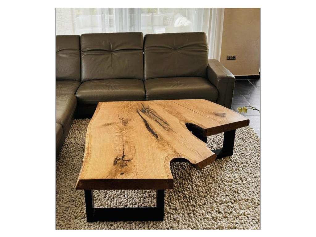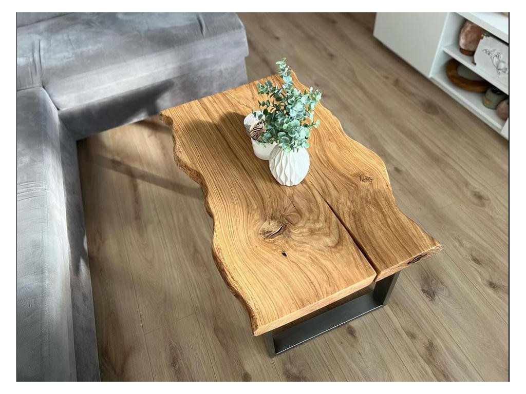 Ručně vyráběný konferenční stolek z masivního dřeva s přirozeným tvarem hrany. Každý kus má svůj vlastní charakter – divoký, surový a naprosto originální.